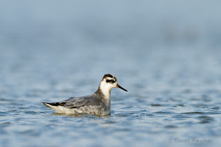 Het weekend van 9-11 t/m 12-11 hebben we met de VWG-Losser weer Texel bezocht. Elk jaar maken we met een aantal leden een uitstapje naar een locatie waar je goed vogels kunt waarnemen. Texel is een uitgelezen plek daarvoor, vooral in de vogeltrektijd. Voor onze komst waren er al een aantal leuke soorten waargenomen zoals: steppe klapekster, rosse franjepoot en zwarte ooievaar. Ook de weersvoorspellingen waren gunstig, wat ook niet onbelangrijk is. Kortom het beloofde weer een leuk weekend te worden. De meeste leden van de vogelwerkgroep besteden zo'n weekend met het zien en spotten van zo veel mogelijk soorten vogels. Natuurlijk is het fraai om bijzondere soorten te zien, maar persoonlijk ga ik voor het fotograferen van de vogels en ook voor landschappen etc. Ook voor de 'gewone' vogelsoorten haal ik mijn camera uit de tas, het gaat mij er gewoon om om mooie beelden te maken. Natuurlijk is een bijzonder soort als de rosse franjepoot dan een buitenkansje! Op het eiland aangekomen hebben we gelijk maar de steppe klapekster proberen op te sporen. Na een uurtje zoeken hadden we hem gevonden en we waren niet alleen.. Er waren meerdere vogelaars ter plekke en dat maakte het ook lastig om er een goede opname van te maken, vooral om dat er enkele gasten achter de vogel gingen 'aanjagen'. Dit werkt natuurlijk niet, en heb zelf gewacht bij een struikje die hij een aantal keren bezocht als observatiepost. Helaas kwam hij tijdens ons bezoek er niet meer op terug en moest ik het doen met een opname van grote afstand waar hij op een weidepaaltje zat. Een herkansing zat er de volgende dag niet meer in , want hij bleek later vertrokken te zijn... Wel had ik meer geluk met de rosse franjepoot. Deze mooie soort die uit de arctische gebieden komt is totaal niet schuw omdat hij geen mensen kent en tegenkomt, is dan ook goed te benaderen en te fotograferen. Plat op mijn buik liggend om zo een goede rustige achtergrond te krijgen, kon ik er een mooie serie opnames van maken. Heb deze fraaie soort elke dag even bezocht, want het weer was erg afwisselend. De laatste opnames waar het water rimpelloos is en met een zonnetje vind ik meer dan geslaagd! De details van deze vogel komen dan mooi tot uitdrukking.